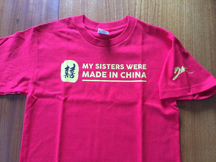 Many designs may require multiple application of graphics. This t-shirt made for the documentary film"My sisters were made in China” included a stylistic 2014 date imprint on of the sleeves.